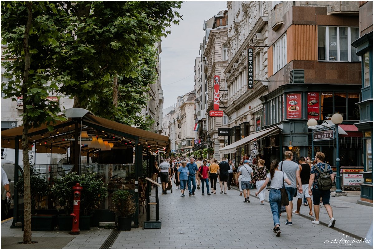 Išėję iš turgaus pateksite į Vaci utca  – tai pagrindinė Budapešto pėsčiųjų gatvė – restoranai, kavinės, parduotuvės ir žinoma, nemažai žmonių.