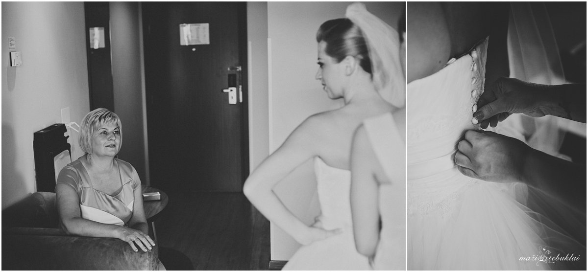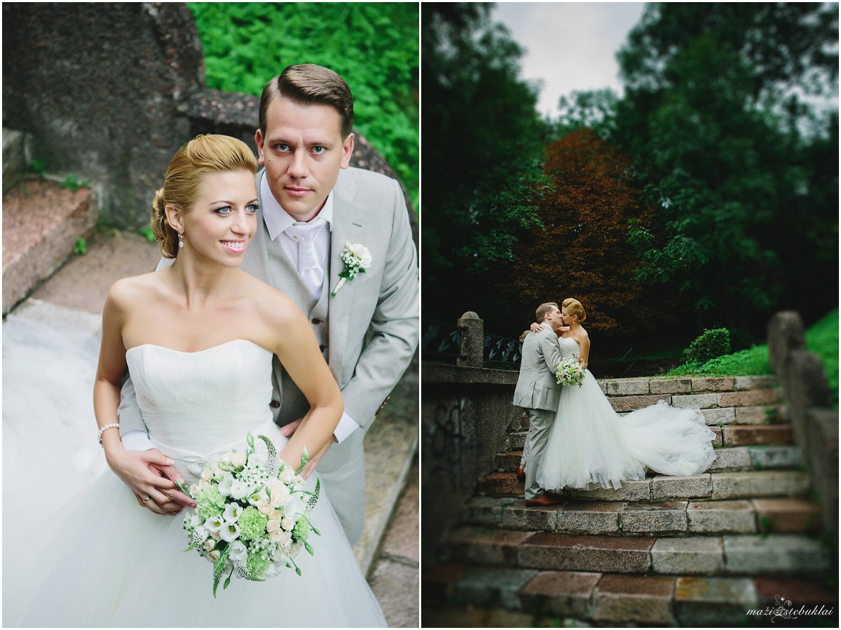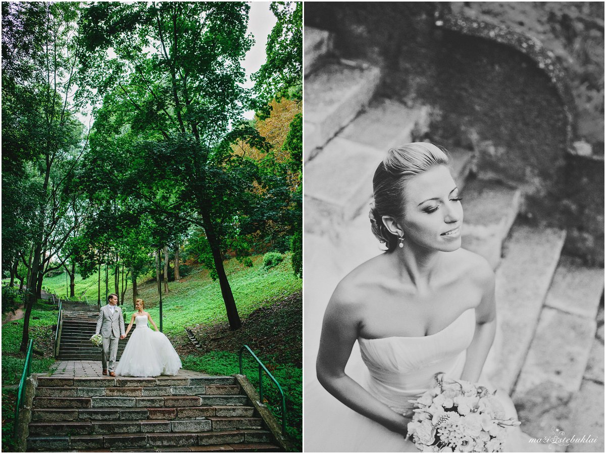 Su Jūrate ir Linu susipažinome beveik prieš metus iki jų šventės. Tuomet, kai jie pirmą kartą atėjo į susitikimą su manimi dėl vestuvių fotografavimo. Žinoma, iš pradžių jiems buvo šiek tiek nedrąsu, bet ledus pratirpdėme pašėlusioje Love story (poros fotosesijoje) pavasarį. Taigi, vestuvių dieną viskas ėjos kaip per sviestą 🙂 Nuotaką gražino Parkinn viešbutyje, Kaune, nuostabi visažistė Agnė Valaitienė. Su Agne susitinkame jau nebe pirmą kartą ir manau, tų kartų tik daugės. Jos darbai puikūs ir nuotakos tiesiog švyti 🙂 Vestuvinė Santuokos ceremonija vyko Garliavos Švc.Trejybės bažnyčioje, po ceremonijos vykome į vestuvinę fotosesiją prie Kauno apskr.viešosios bibliotekos gražiame, žaliame parkelyje ir pratęsėm prie Kauko laiptų. Pabaigoje dosniai gavę net ir lietaus, vykome į šventės vietą – Pompėjos restoraną. Šventės svečiais, dekoru ir pagalba jauniesiems rūpinosi Devaltos renginių organizavimo firma. Vakarą vainikavo puiki programa ir muzika. Ir buvo taip gera, kad mes su mano mylima kolege net nenorėjome išvykti 🙂 Tiesa, mums dažnai taip būna :)) Jūrate, Linai, su Jumis buvo labai gera. Linkėjimai 😉