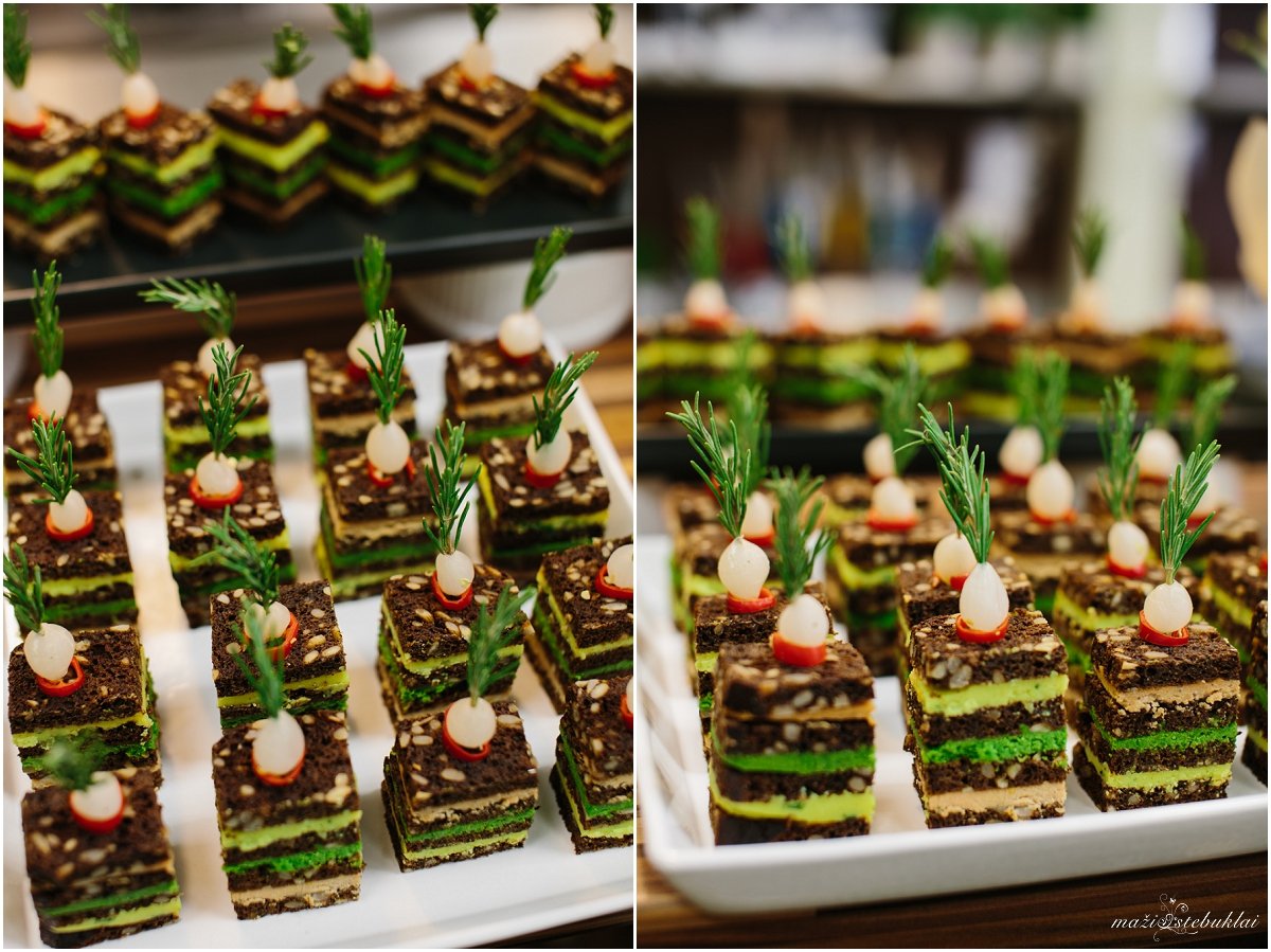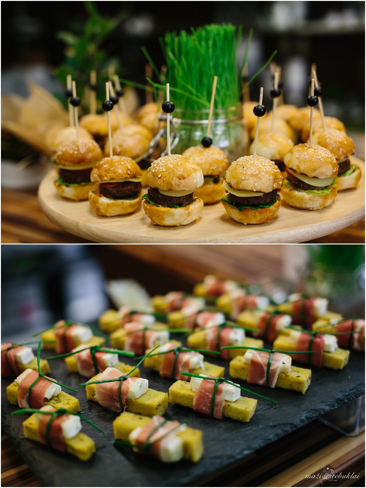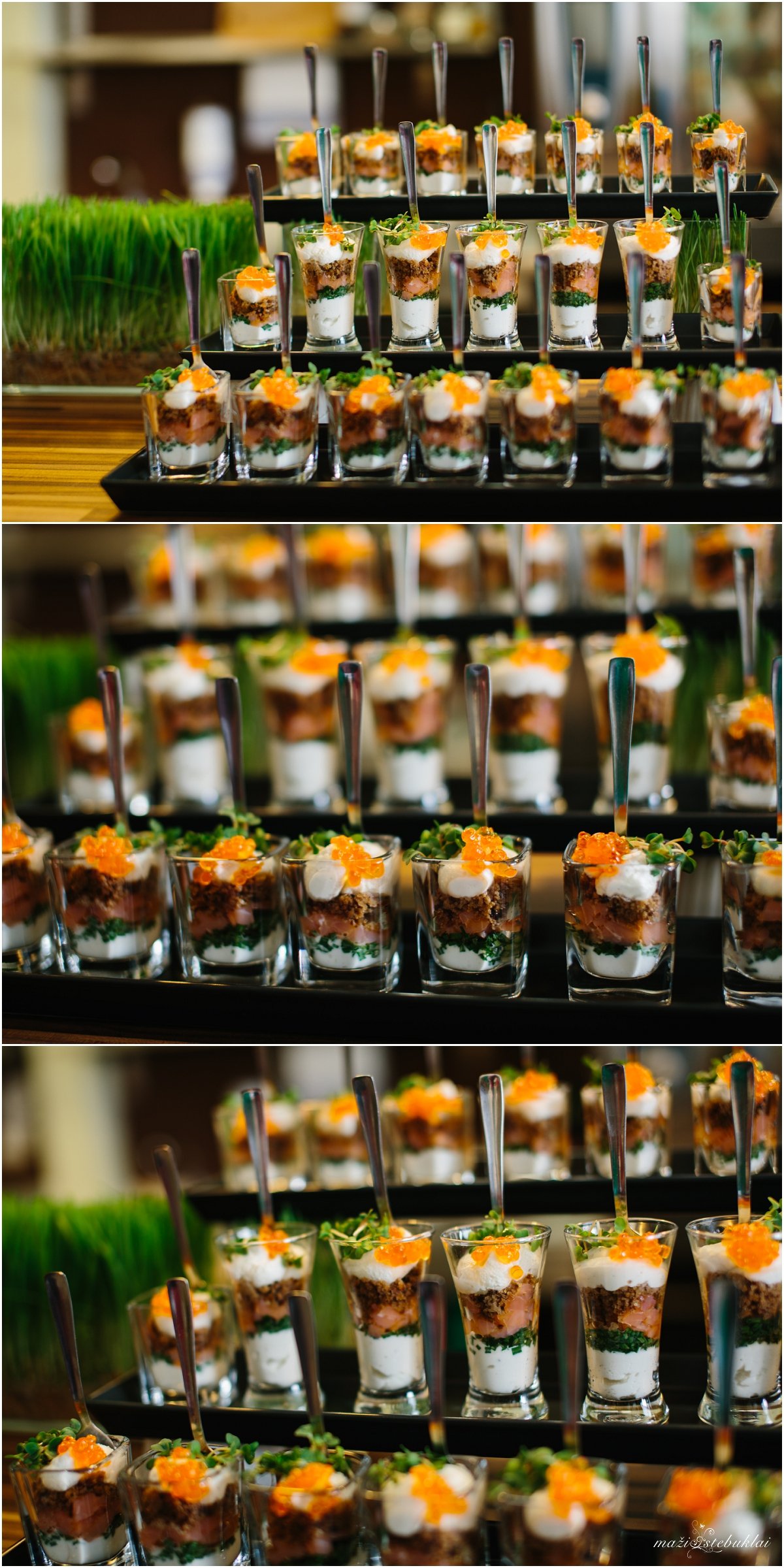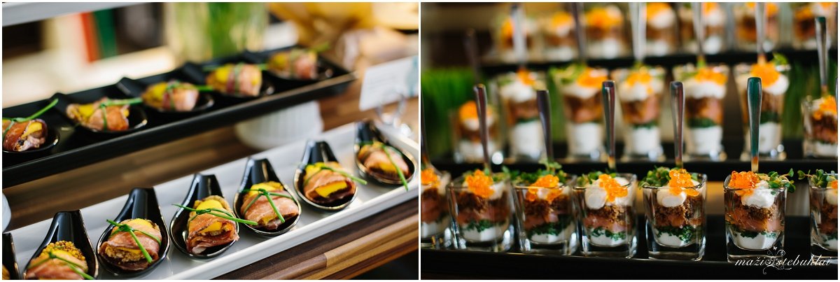 Spalvų ir skonių deriniai švelniai susiliejo mano vaizduotėje, sproginėjančiais spalvingais ratilais. Buvo labai gardu, paragavau tikrai nemažai įvairiausių užkandžių ir kelis saldumynus. Labai patiko mango kąsnelis su vytintu kumpiu, auksinė salsa su vištienos kremu ir saldžiais kukurūzais. Kadangi nesu labai didelė žuvies gerbėja labai maloniai nustebino menkės kremas su žaliojo poro marškinėliais, jis buvo švelnus kaip šilkas. Skirtingi užkandžiai atskleidė įvairius skonius: nuo gaivių, lengvai pagardintų žalio aliejaus ir balto vyno padažu, salotų iki sluoksniuotos duonos užtepėlių torto ar net mini burgerių. Namo iškeliavau su burnoje tango šokančia šokolado ir aviečių panna cota. Buvo smagu, gražu ir labai skanu. Pagyrimai puikiai komandai:)