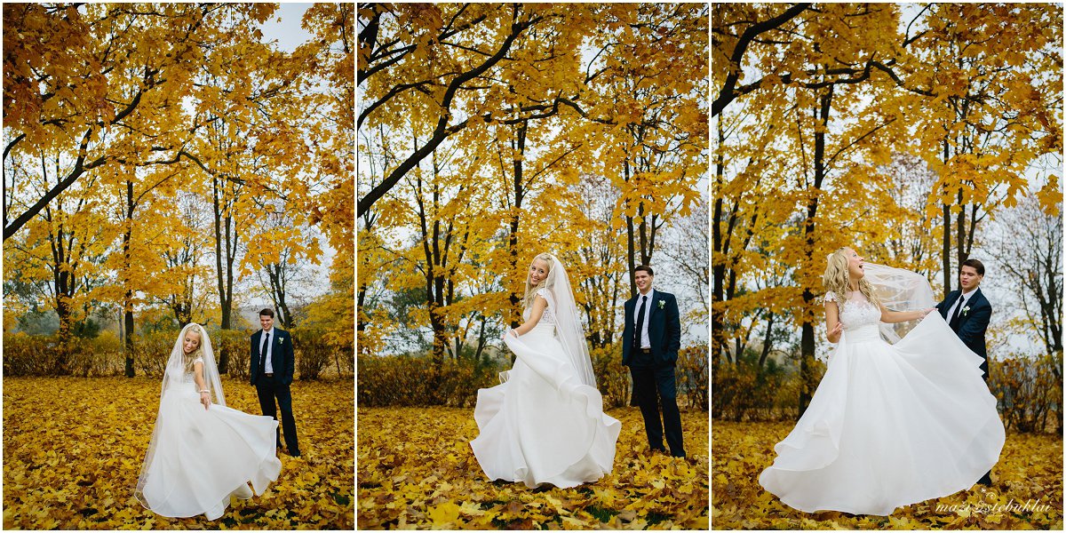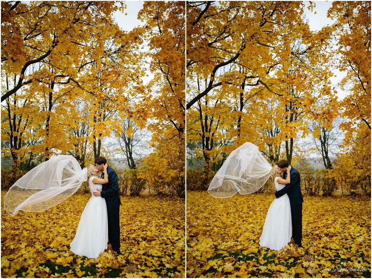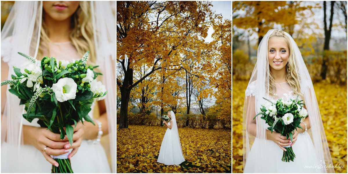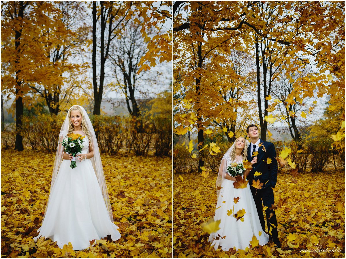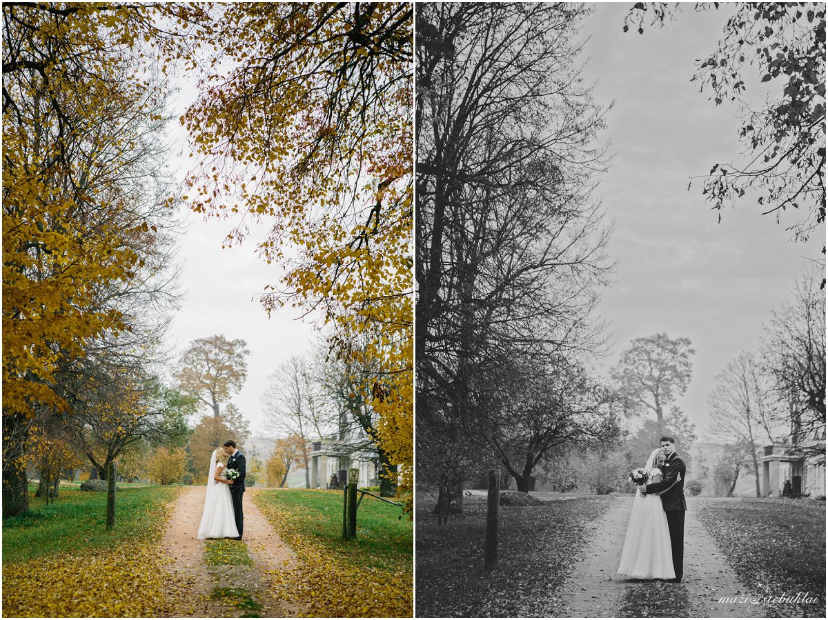 Žiema pats geriausias laikas ramiems pasisėdėjimams prie arbatos puodelio. Indrę ir Tadą labai gera prisiminti. Jų vestuvės vyko rudenį, kai medžiai būna pasipuošę aukso rūbais. Nuotaka ruošėsi ir vakare šventė vyko viešbutyje Sfinksas. Tuokėsi Kauno Kristaus Prisikėlimo bažnyčioje. O auksiniu rudeniu pasigrožėti ir fotosesiją daryti nuvykome į Babtyno-Žemaitkiemio dvarą.