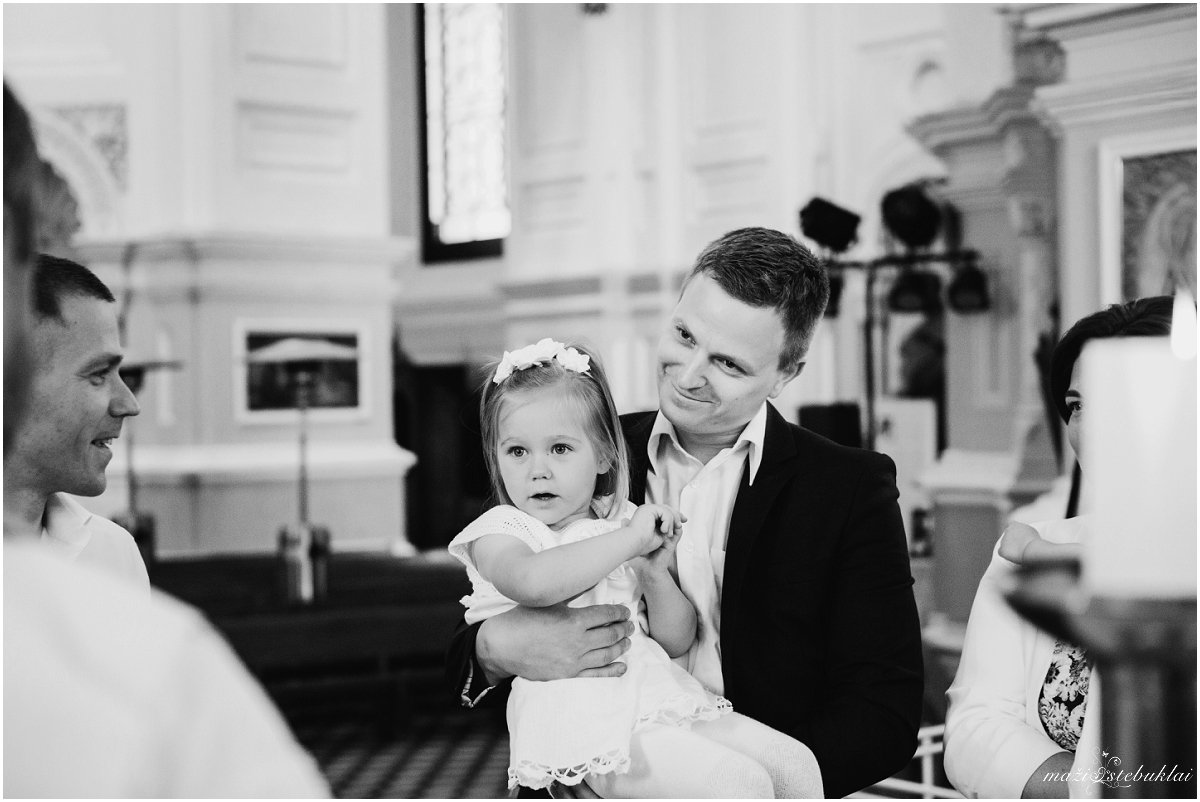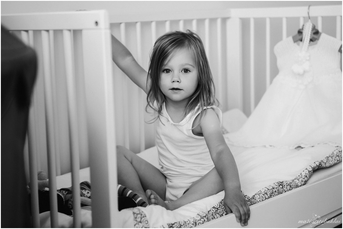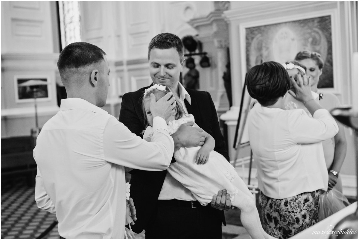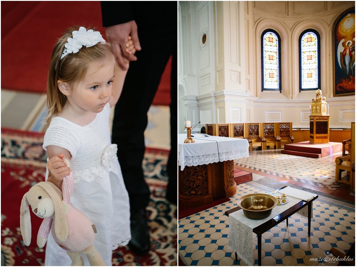 Atvykus į dviejų sesučių namus, mane pasitiko Dominyka ir Augustė. Mergaites aprangę tėveliai su krikšto tėveliais išskubėjo krikšto ceremonijai, kuri vyko Kauno Šv. arkangelo Mykolo (Įgulos) bažnyčioje. Po ceremonijos tėveliai su svečiais vyko į Raudondvario dvarą.