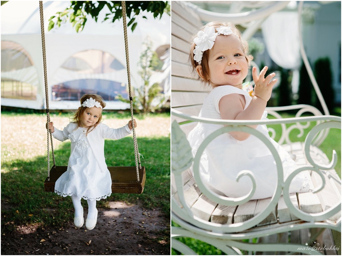 Oficiali dalis prabėgo, sveikinimai išdalinti, beliko fotosesija. Dažniausiai krikštynų fotosesijos vyksta dienos metu , o jei diena numatoma saulėta ir jūsų fotosesija vyks vidurdienyje, kai saulė bus labai aukštai, siūlau pasirinkti tokią vietą, kurioje galėtumėte rasti ir pavėsingą vietą. Taip ne tik nesukaisite nei jūs, nei jūsų vaikas, bet ir galėsite mėgautis fotosesijos teikiamais malonumais, būnant pilnai atmerktomis akimis.