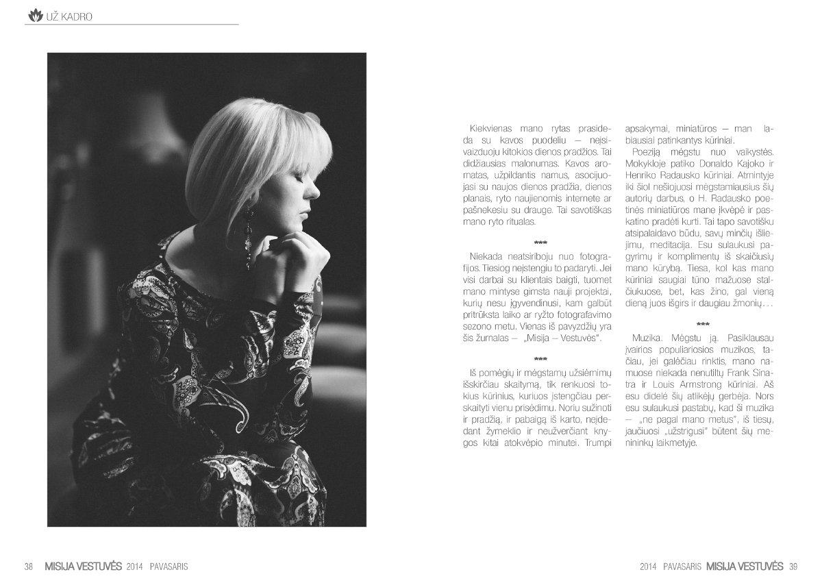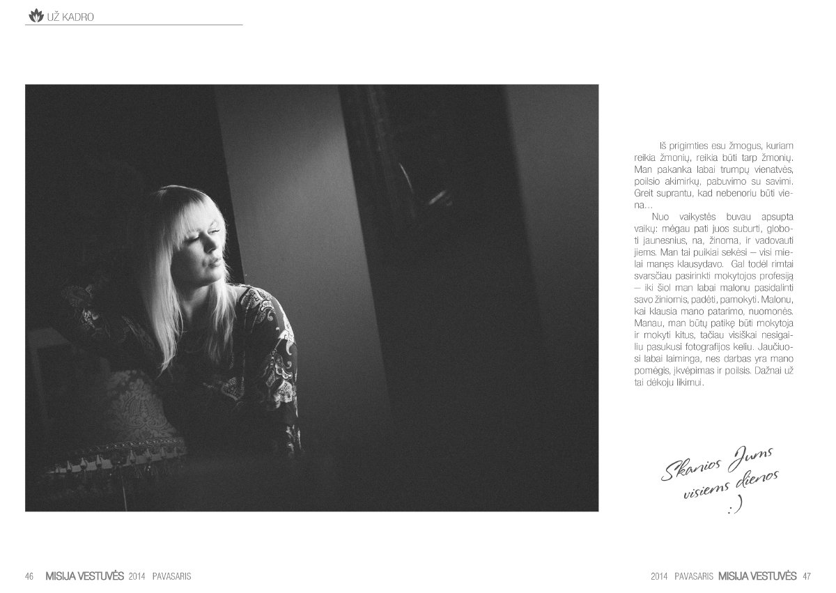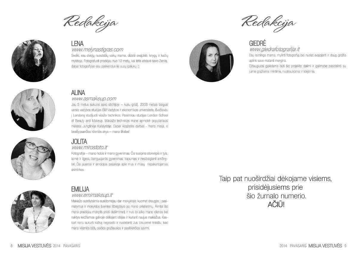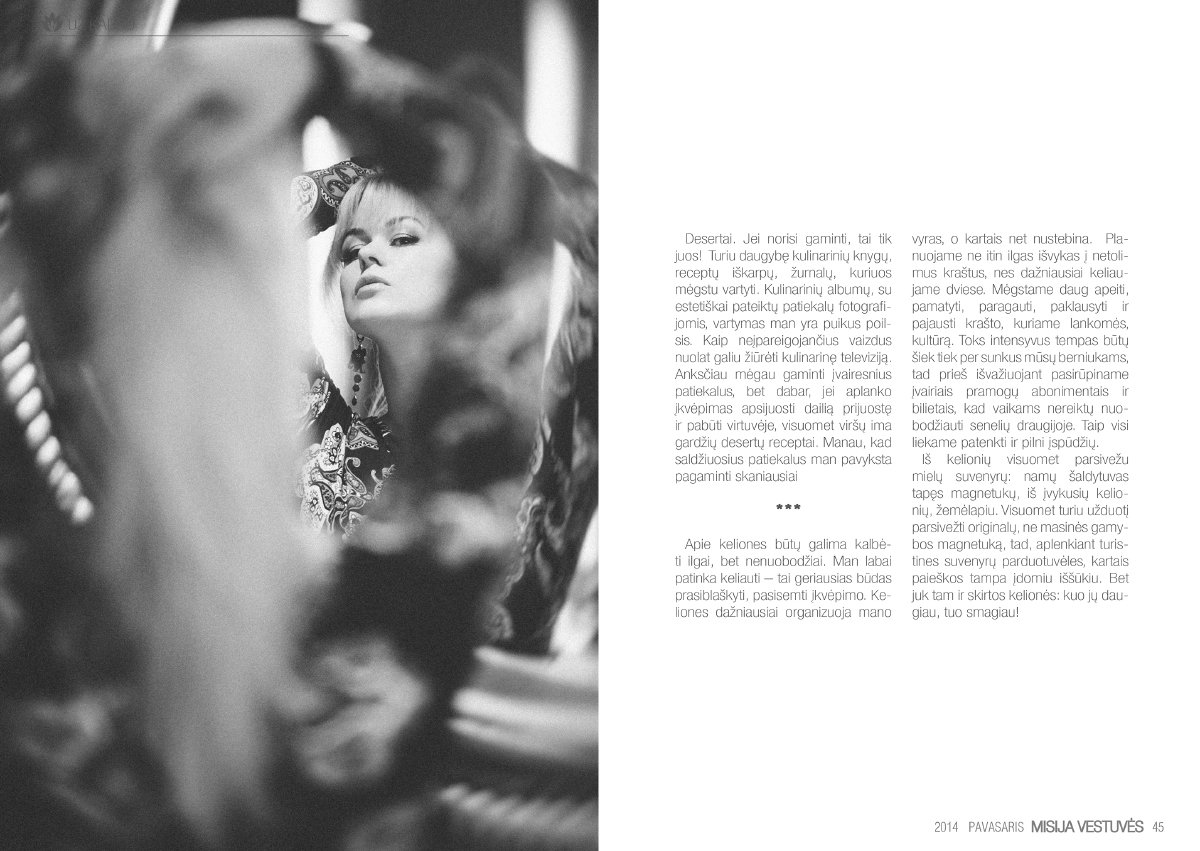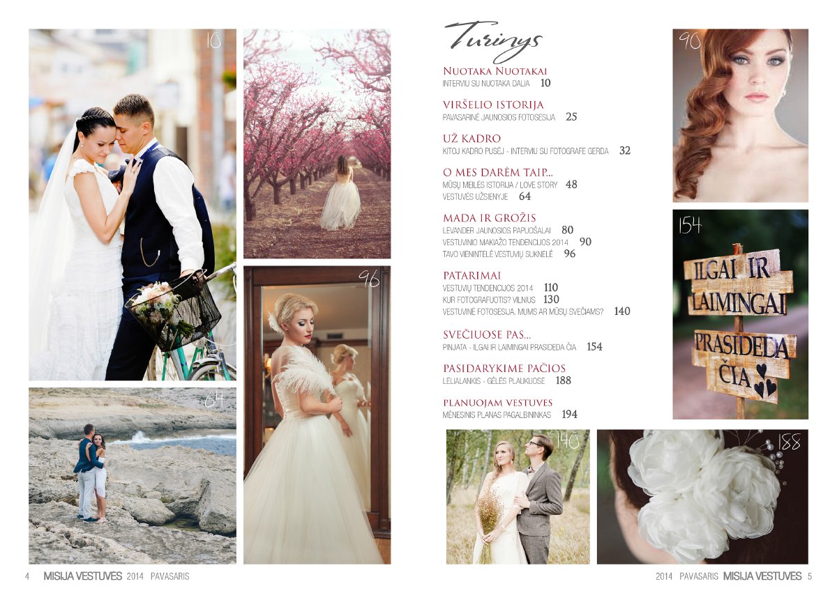 Labai džiaugiuosi galėdama pristatyti mūsų komandos šviežutėlį kūdikėlį – pirmą el.žurnalą Lietuvoje apie vestuves. „Misija Vestuvės” – tai misija įmanoma! Elektroninis žurnalas būsimiems jauniesiems ir ne tik! Čia rasite daug naudingų patarimų, įdomių straipsnių bei mūsų nuotraukų. Lai šis žurnalas tampa jūsų įkvėpimo šaltiniu kaip galima patiems susikurti nuostabią šventę sau ir savo svečiams!