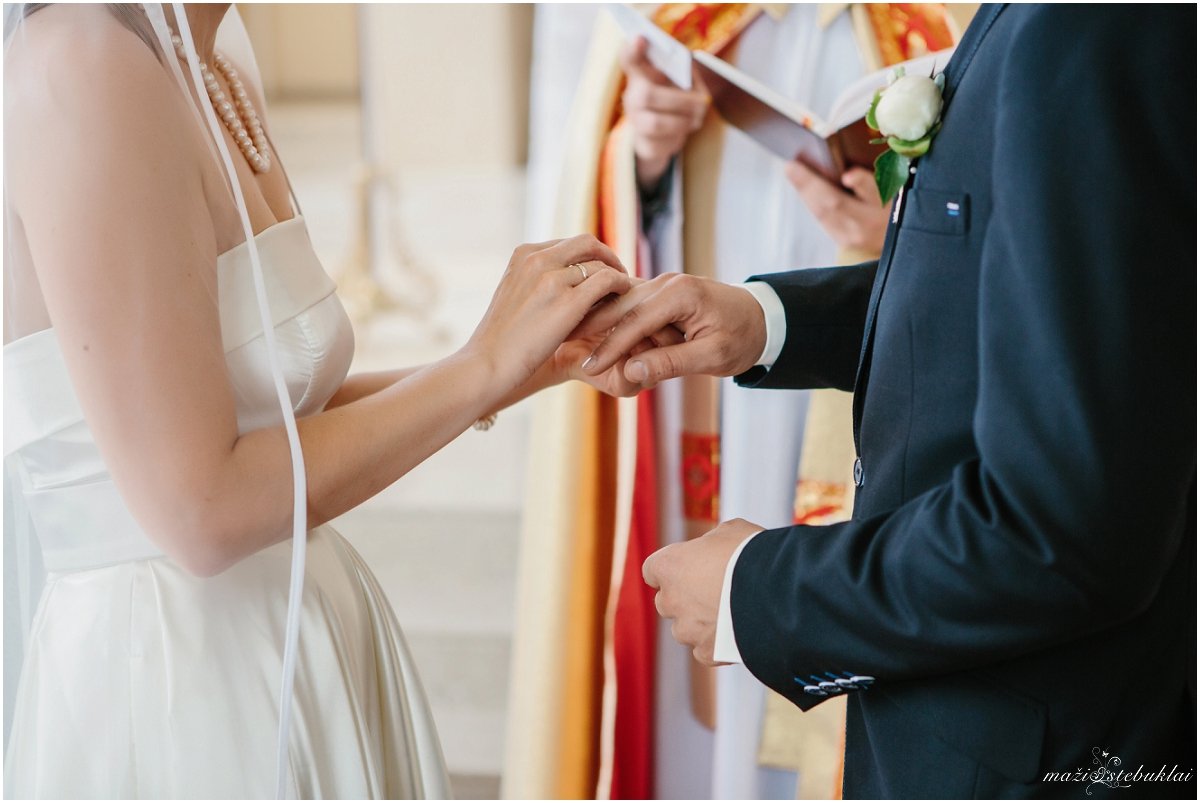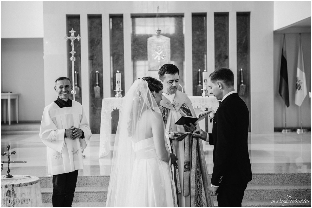 Ceremonija vyko Domeikavos Lietuvos kankinių bažnyčioje. Po ceremonijos jaunavedžiai vestuvinei fotosesijai vyko į Dubravos rezervatinę apyrubę.