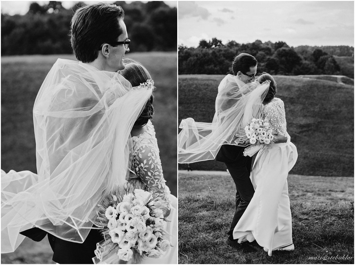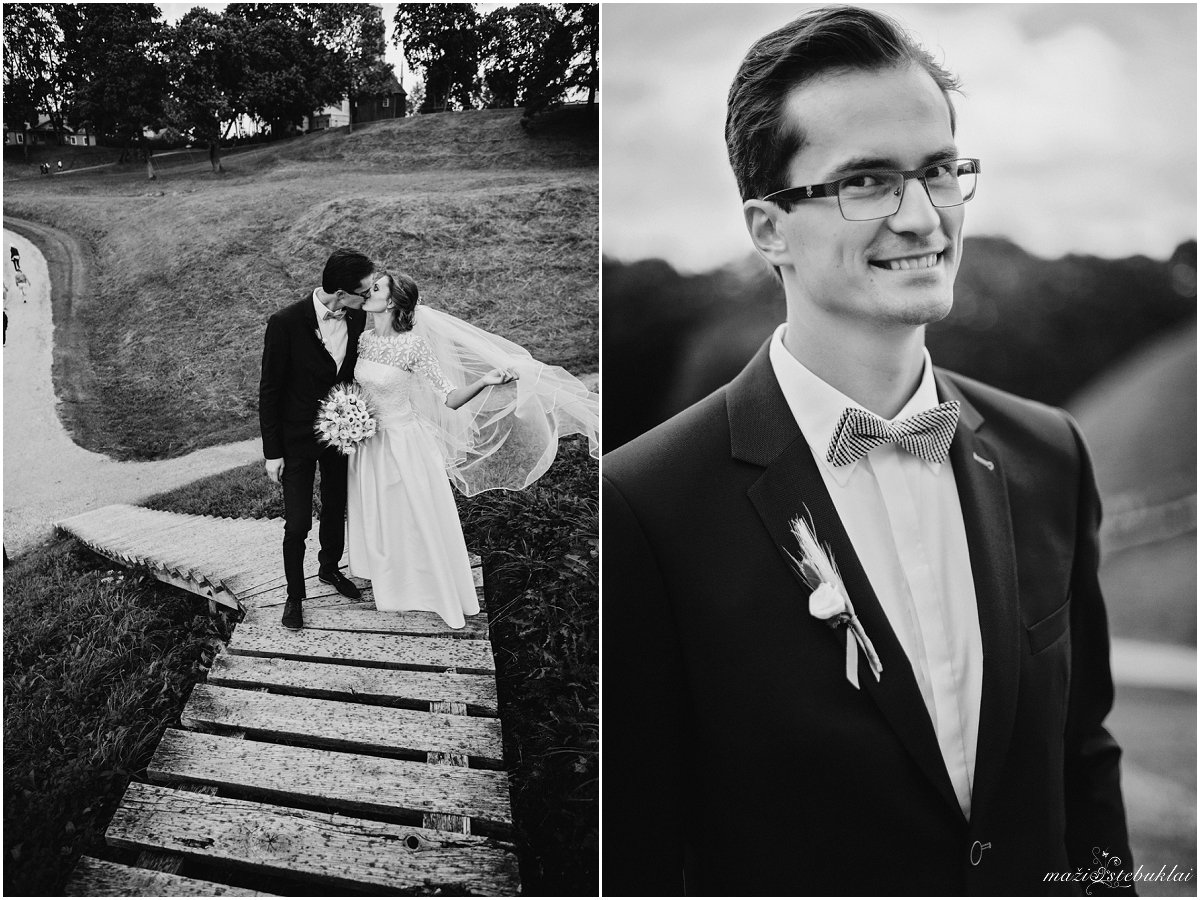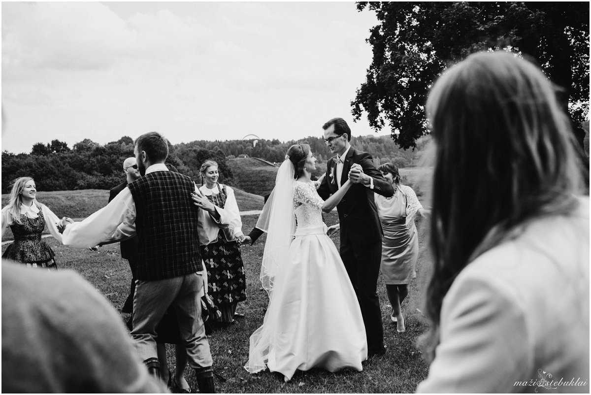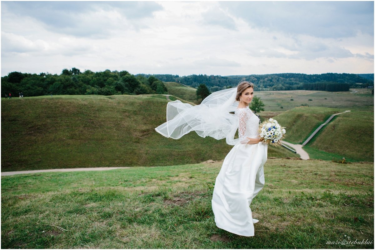 Šiandien taip šalta, kad norisi tik gulėti po šilta antklode, šalia turėti karštos garuojančios kavos puodelį ir smagiai sau tinginiauti. Kad nebūtų taip šalta, keliamės į dviejų gražių žmonių šventę. Vestuvių ceremonijai Viktorija ir Medardas pasirinko Kernavės bažnyčią, o fotosesijai Kernavės gražius piliakalnius. Diena buvo vėjuota, bet turint tokį būrį linksmai nusiteikusių draugų jokie vėjai nebaisūs. Ne itin dažnai Vestuvėse pamatysi lietuvaičius tautiniais rūbais, dainom linksminančius susirinkusius svečius, bet labai smagu, kai pamatai ir tai kaskart priverčia nusišypsoti bei prisiminti mūsų tradicijas. Viktorija, Medardai, jūsų šventė buvo įsimintina ir labai graži. Kuo nuoširdžiausi linkėjimai Jums, būkit laimingi!